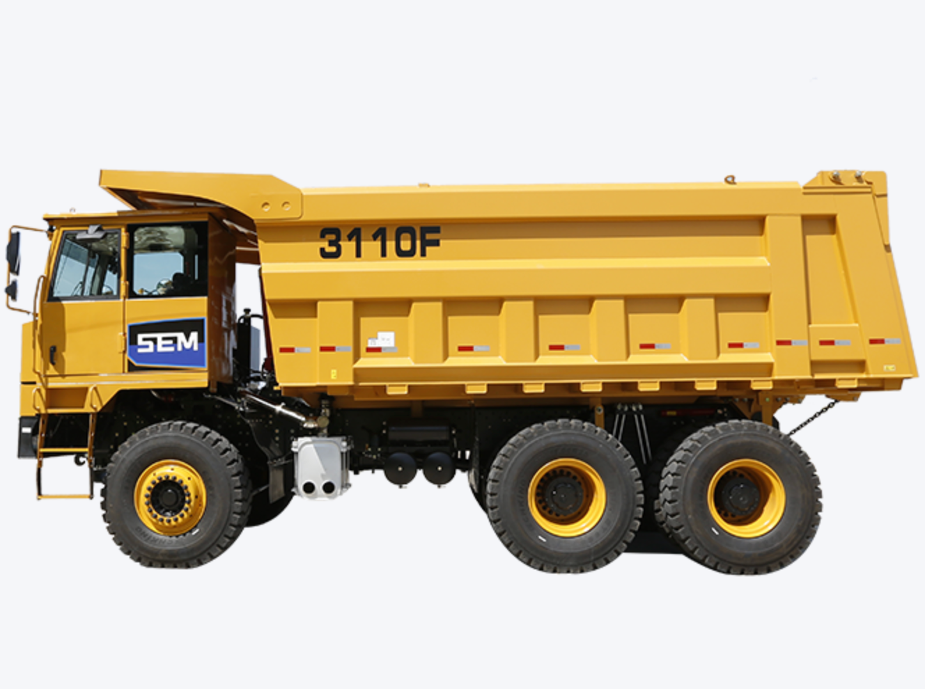 - The SEM 3110F wide body dump truck has strong cargo pulling ability